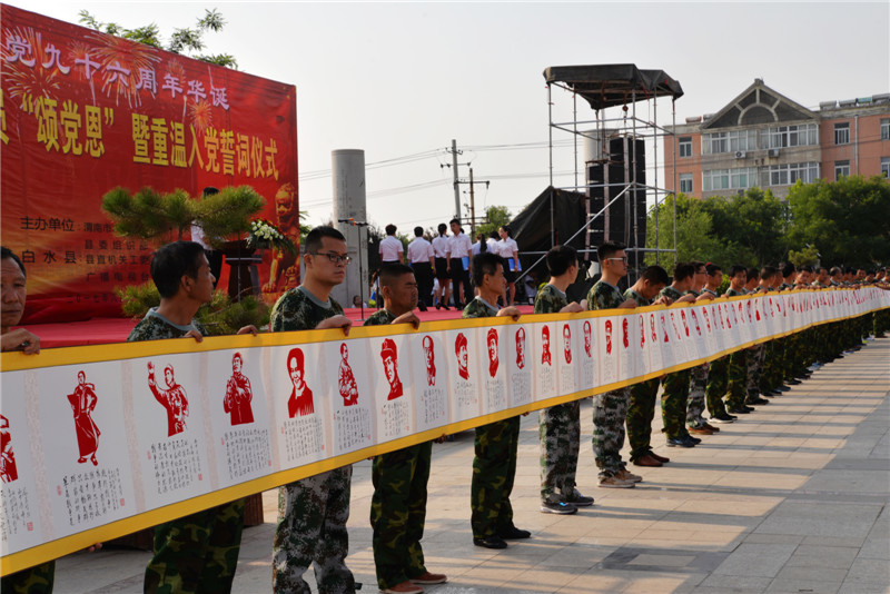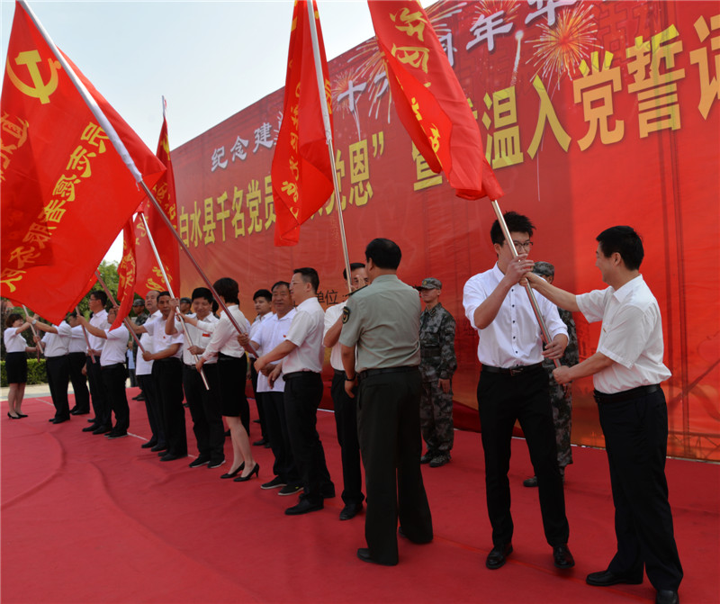 6月30日上午,我县举行千名党员“颂党恩”暨重温入党誓词仪式活动,隆重纪念伟大的中国共产党建党96周年华诞。县人大常委会主任刘存虎、政协主席李全海及全体县级在家领导、县直机关工委全体党员、各镇(街道)、社区、城区各党(工)委党员代表2000余人参加活动仪式。