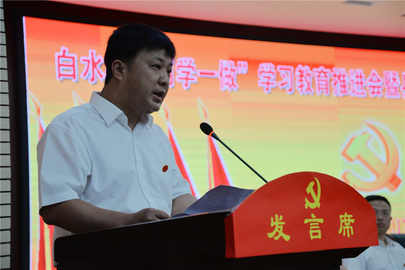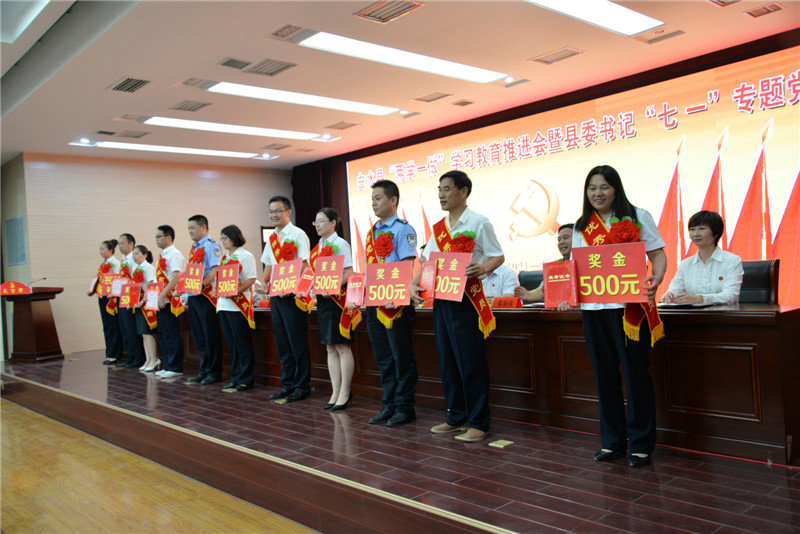 县委副书记卢林宣读了《中共白水县委关于表彰先进集体和先进个人的决定》,并对林皋党委等47个先进基层党组织、于王芳等50 名优秀共产党员、林智龙等20名优秀党务工作者予以表彰。县上领导为受表彰的先进集体和优秀个人代表进行了颁奖。同时,尧禾镇党委和水务局机关党委分别在大会上就“两学一做”学习教育制度化常态化作了经验交流。